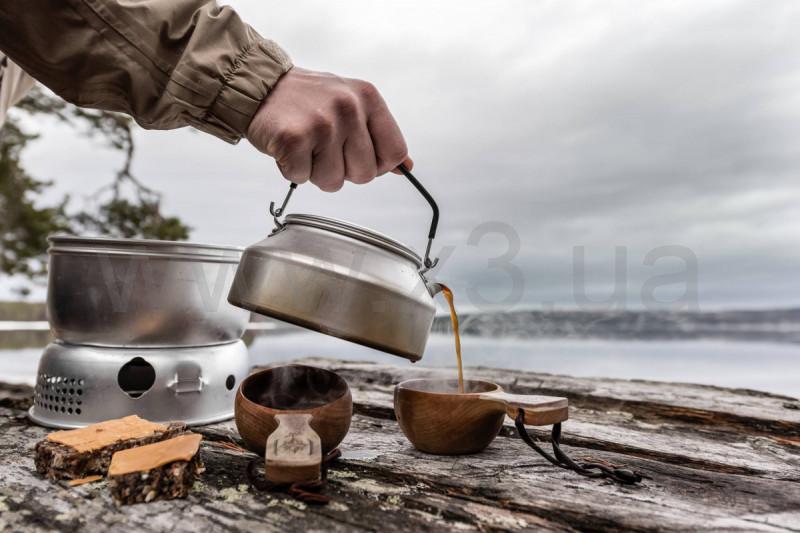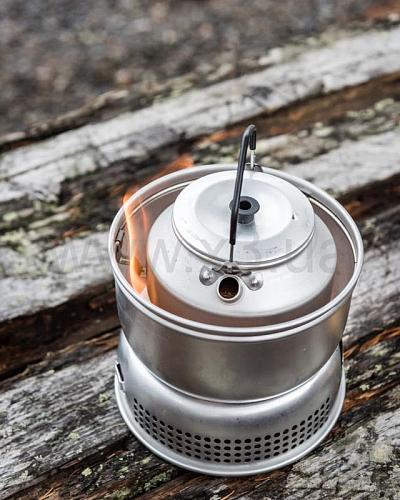 Туристический алюминиевый чайник от шведского бренда Trangia. Оснащен крышкой с пластиковым ушком и ручкой со съемной манжетой для защиты рук от ожогов. Подходит для плиток Trangia Stove в любой комплектации, туристических горелок, а также альтернативных источников тепла, таких как костер, печка на щепе или домашняя печь.