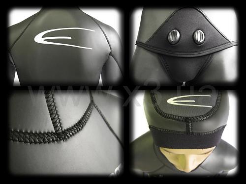 Голый неопрен помагает нырять гораздо глубже и в разы снижает теплопотери при испарении воды с поверхности костюма. Технология "сэндвич" значительно увеличивает срок службы костюма.