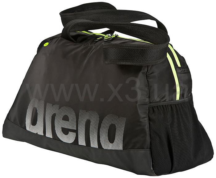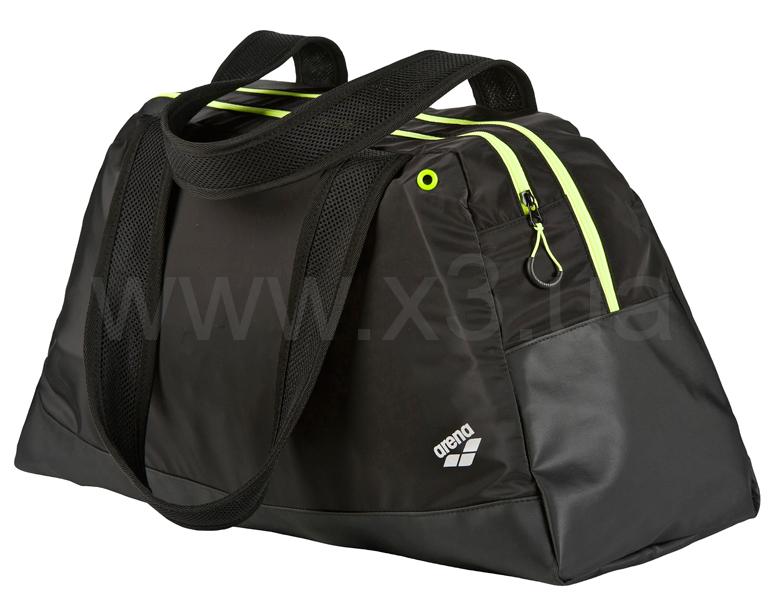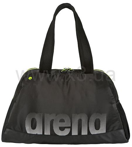 Спортивная женская сумка Fast Woman от Arena. Этот практичный аксессуар, выполненный из гладкого материала, предназначен для переноски и хранения одежды, обуви, спортивного инвентаря. Разграничение пространства строго продумано. Два больших отсека вместят все необходимое. Внутренний кармашек пригодится для хранения мелких личных вещей. Для бутылки с водой – внешний карман из сетчатого материала. Благодаря водоотталкивающему донышку в сумке можно переносить мокрую экипировку. За вентиляцию и естественную просушку вещей отвечают специальные люверсы. Сумка закрывается на застежку-молнию с удобными петельками на бегунках. Две ручки средней длины изготовлены из мягкой сетки. Эта стильная модель выполнена в универсальном черном цвете, дополнена яркими элементами.