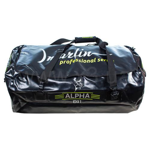 Сумка Marlin Alpha 120 (Марлин Альфа) изготовлена из прочного водонепроницаемого ПВХ 1000 DEN. Её размеры позволяют вместить два полных комплекта снаряжения, включая ласты длиной до 75 см. Специальный клапан позволяет быстро слить воду от мокрой экипировки, а сварные швы и плотная молния способны удержать оставшуюся влагу внутри. На внутренней стороне крышки сумки расположен большой сетчатый карман на молнии. Боковые и основные ручки позволяют транспортировать сумку в любом положении.