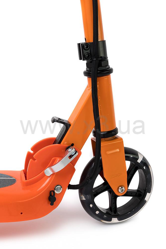 Максимальная скорость этого самоката составляет 12 км/час, чего вполне достаточно для детской и подростковой модели и является рациональным решением для безопасности. Мощность электродвигателя в 120W позволяет ребенку беспрепятственно наслаждаться катанием. Запаса батареи хватает до 8 км. Вес электросамоката всего 5.5 кг, при этом он выдерживает нагрузку на платформу в 80 кг. За счет легкости и складной конструкции, удобно брать этот самокат с собой на прогулку в парк или загород.