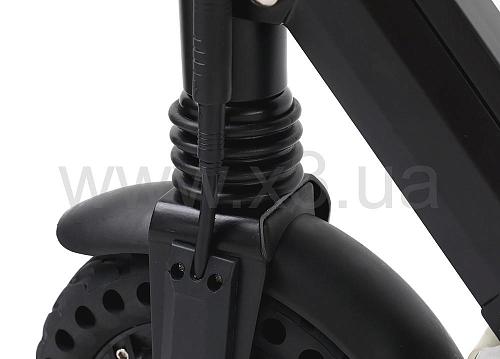 Имеется передняя и задняя системы амортизации. Благодаря чему, движение самоката очень мягкое. При значительных неровностях на дороге, ногам не передается жесткая вибрация от езды. Подвеска самоката крепкая и надежная.