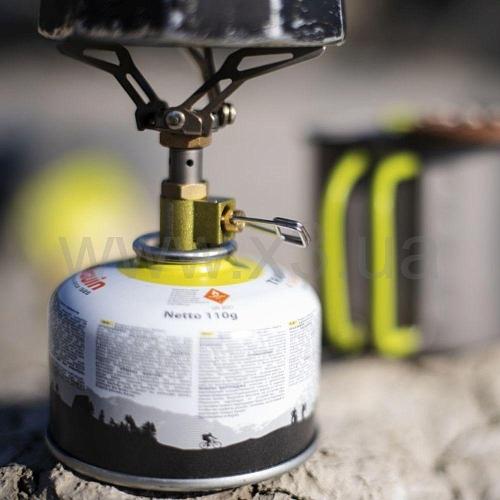 Очень легкая и компактная, минималистичная горелка из титана. Имеет резьбовое соединение с газовыми баллонами на 110 г, 230 г и 450 г.