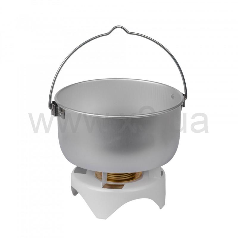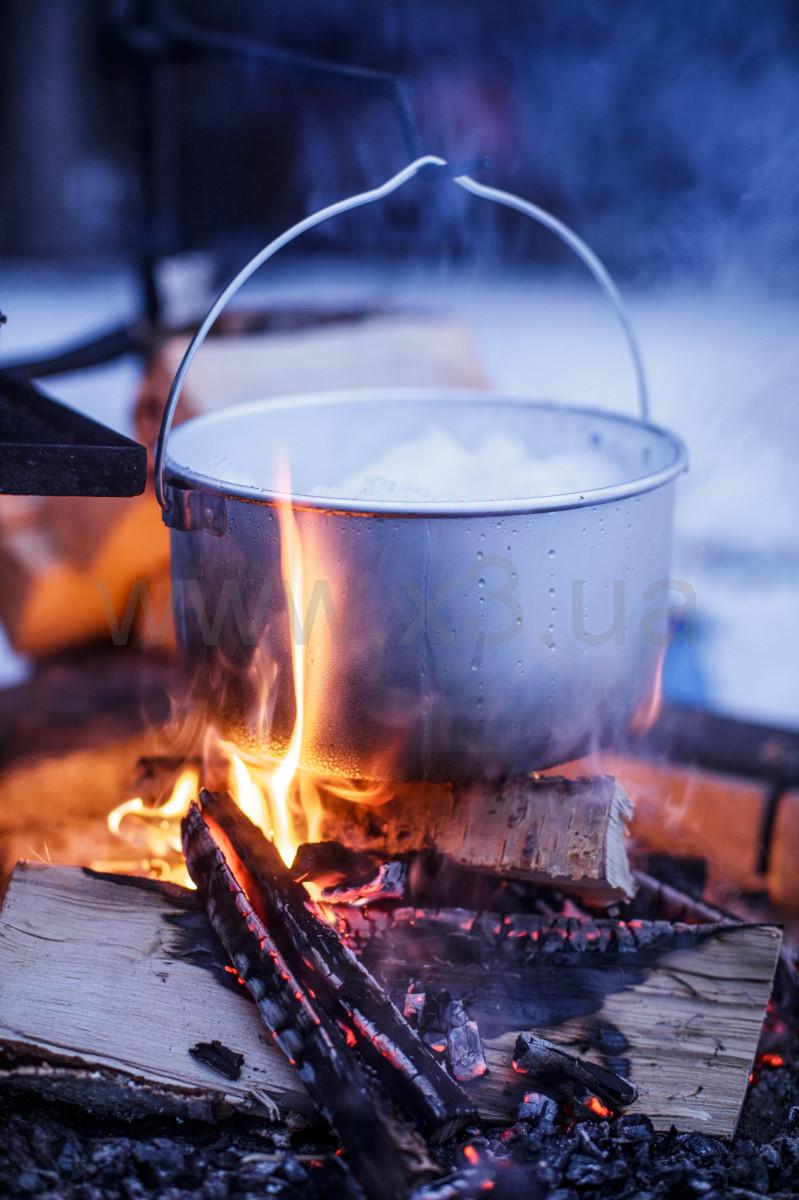 Весит всего 230 г. Малый вес позволяет безопасно использовать казанок даже с компактными туристическими горелками.