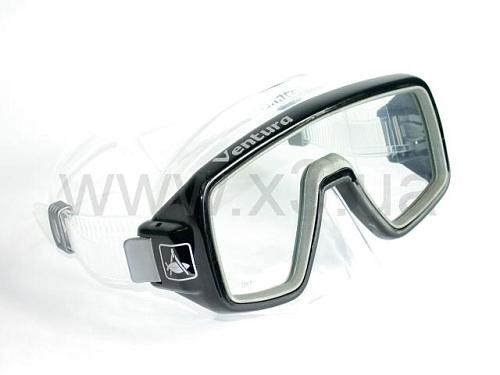 Однолинзовая маска с увеличенным углом обзора, карданными пряжками и широким анатомическим ремешком.