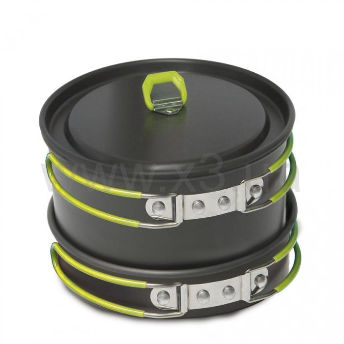 Набор алюминиевой посуды Pinguin Rover L 605204 для большой дружной семьи из 4-6 человек. Поверхностный слой анодирован, что придает изделиям огнестойкость, износостойкость. В комплект входят 2 кастрюли, cковородка, 1 кастрюля с носиком/лейкой и 3 крышки для кастрюль. Набор компактно складывается по принципу матрешки.