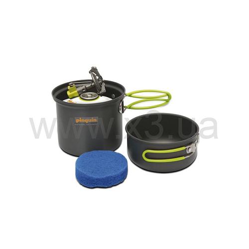 Поверхностный слой анодирован, что придает изделию огнестойкость и износостойкость. Состоит из одной большой кастрюли и губки для мытья. Комплект обеспечивает безопасную транспортировку газовых баллонов и маленькой горелки.
