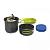 Состоит из одной большой, одной маленькой емкости, крышки для теплообменного/нагревательного элемента и губки для мытья. Маленькая кастрюля может быть использована в качестве крышки. Комплект обеспечивает безопасную транспортировку газовых баллонов и маленькой горелки.