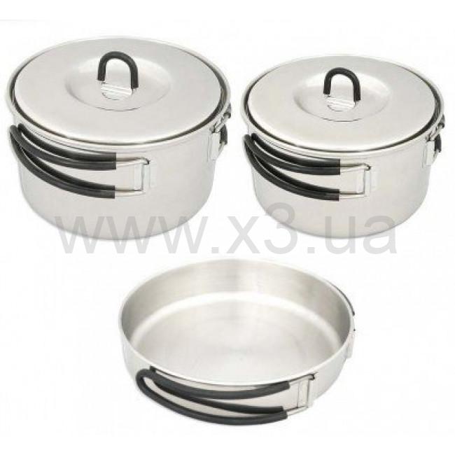 Набор посуды Tatonka Cookset Regular - это компактный набор посуды, состоящий из глубокой сковородки и двух кастрюль (ёмкостью 0.9 и 1.3 литра), которые складываются друг в друга по принципу "матрёшки".