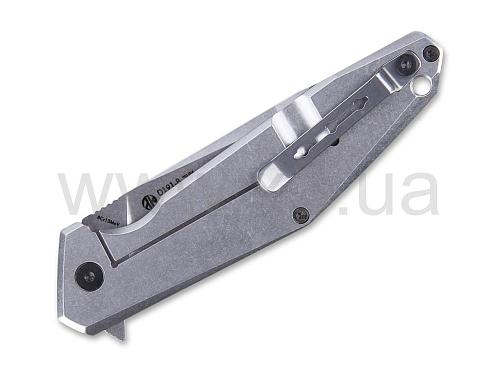 Длина экземпляра достигает 219 миллиметров, толщина три с половиной миллиметра. Вес 120 грамм. Основой накладки для рукояти послужил современный, сверхпрочный композитный материал G10. Это, по сути, стеклоткань, которая соединена с эпоксидными смолами. Готовый материал прекрасно проявляет себя в эксплуатации. Выдерживает механические повреждения, действие влаги, высоких температур, хорошо поддается окрашиванию. Металлическое основание рукоятки сделано из стали марки 420. Есть съемная стальная клипса и отверстие под темляк. Характерные черты ножа: прочность, долговечность, устойчивость к износу и повреждениям. Клинок из модели извлекается при помощи флиппера и фиксируется стальным замком типа Frame-Lock. За скорость извлечения отвечает осевой роликовый подшипник.