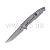 При создании ножа применялась сталь марки 154СМ. Особенность такого материала – в высоком содержании углерода, изначально его использовали для лопаток газовых турбин. Это очень востребованный и качественный ножевой материал. Металлический сплав прошел через криогенную обработку, и обладает защитой от ржавчины. Твердость клинка достигает 58-60 единиц по шкале Роквелла. Это достаточно высокий показатель, как для подобного типа инструментов. Весит модель 110 грамм, толщина клинка составляет чуть более трех миллиметров. Общая длина изделия – 21 сантиметр. Лезвие ножа с легкостью извлекается за счет наличия шайбы с подшипниками. Требуется лишь простое нажатие на одностороннюю «гарду» с противоскользящими насечками, выступающую из рукоятки в сложенном состоянии. Обух имеет скос в полную длину, сходящийся со спусками в ребре к кончику лезвия. Поверхность клинка прошла через дробеструйную обработку.