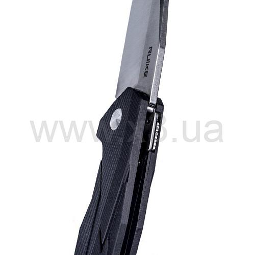 Рукоять модели Ruike P138 состоит из прочных стальных лайнеров и цельнолитых накладок из G10. Они имеют текстурированную поверхность за счёт чего нож не выскальзывает с ладони даже при намокании.