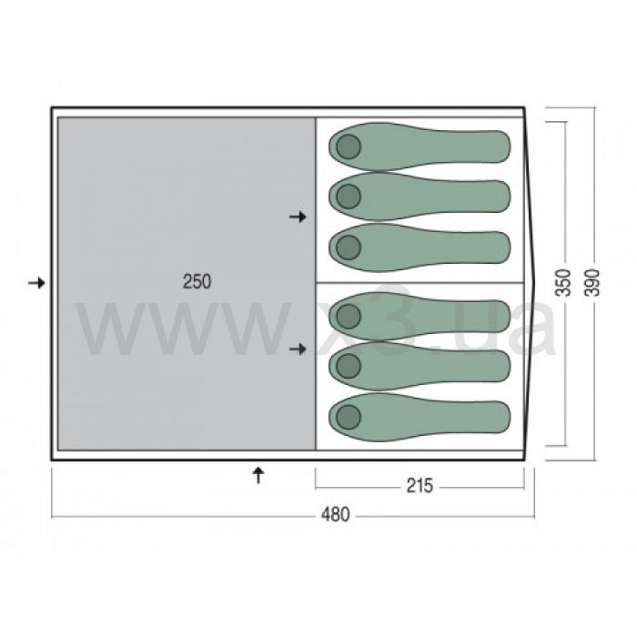 Палатка Pinguin Interval 6 для кемпинга и отдыха на природе с семьей. Просторная с возможностью размещения 6 человек. Большой тембур с окошками и москитной сеткой на входе позволяет использовать его как полевую кухню или прихожую.