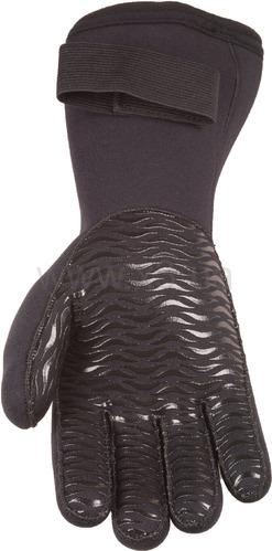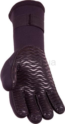Пятипалые перчатки Gauntlet Glove канадской фирмы Bare выполнены из 5 мм неопрена с удлинённой манжетой, фиксирующейся с помощью липучки. Вся поверхность ладони покрыта антипроскальзывающим покрытием с ламинированием. Невидимые швы и двойная проклейка. Эластичная застежка-липучка, удлиненная манжета - крага.