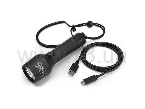 • В комплект поставки входят: фонарик, аккумулятор, USB-кабель, ремешок.