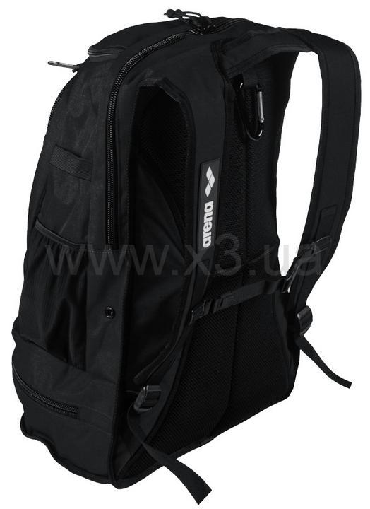 Укрепленное дно. Встроенный карабин позволяет повесить рюкзак и использовать его вместо шкафа для хранения вещей. Специальное отделение в днище рюкзака для сланцев. Одно отделение на молнии спереди. Большое отделение сзади предназначено для крупного тренировочного оборудования. Два боковых сетчатых кармана для емкости с водой. Сетчатые вставки предназначены для вентиляции. Простая в обращении система ремней. Сетчатые спинка и лямки с набивкой обеспечивают комфорт при носке рюкзака.