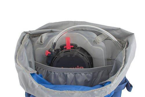 Задняя часть рюкзака усилена съемной пластиной из полиэтилена высокой плотности со встроенным дюралюминиевым усилением, которое помогает распределить вес перевозимого груза на спине и устраняет давление транспортируемых предметов на спине.