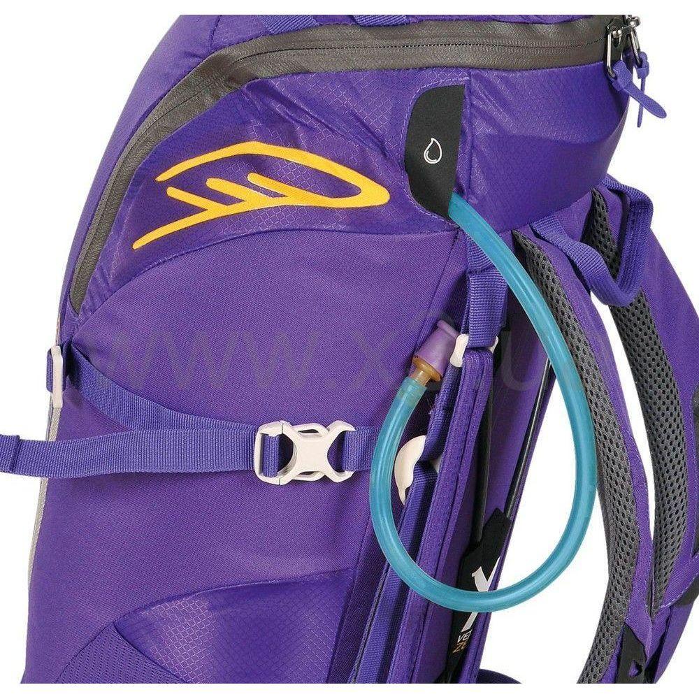 В рюкзаке есть съемная перегородка, с помощью которой можно разделить рюкзак на 2 отсека, нижний вход. На верхнем клапане есть петли для навески дополнительного снаряжения и карман с держателем для ключей и чехлом от дождя. Рюкзак имеет отличную вентиляцию, мягкие лямки и поясной ремень, созданные с учетом женской анатомии.