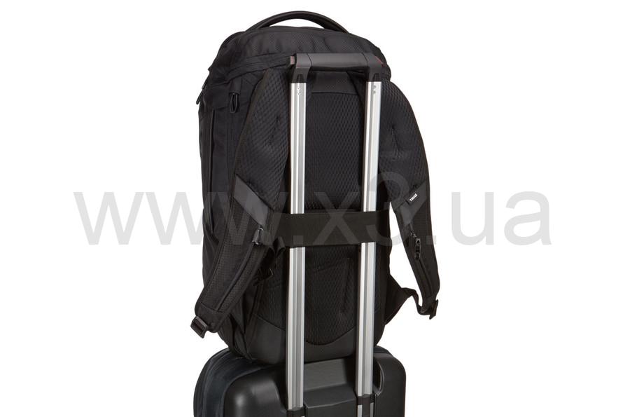 Специальная панель для надежного крепления сумки к чемодану на колесиках помогает путешествовать с удобством