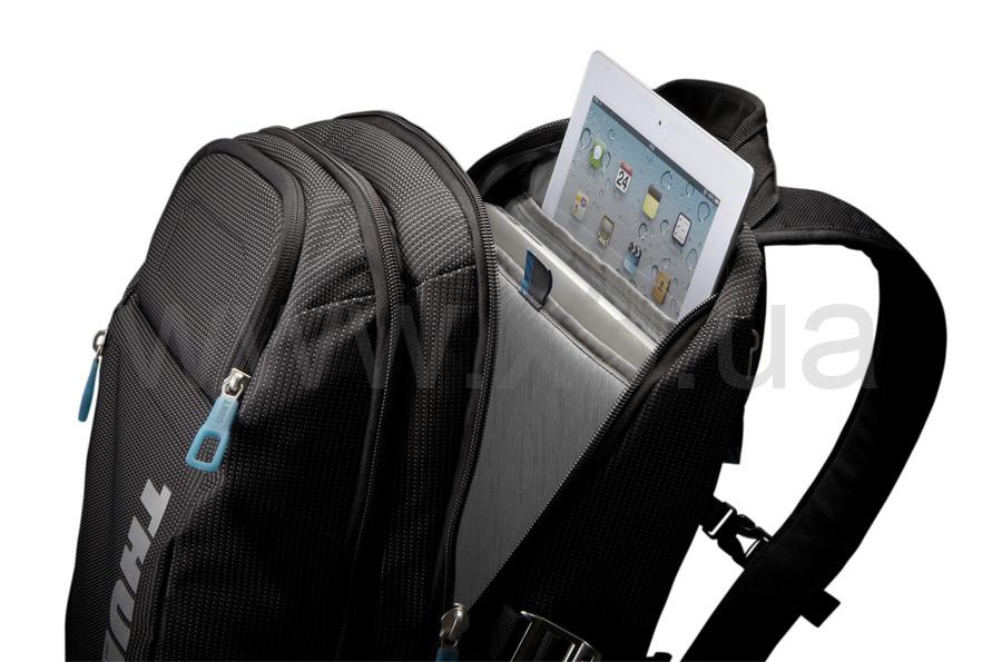 В основном отделении находится приподнятый мягкий чехол для 15" MacBook Pro® с надежным фиксирующим ремнем для ноутбука и чехол для iPad®