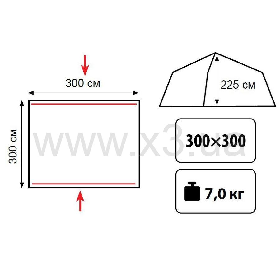 Тент: 100% Полиэстер 75D/190T WR PU 4000 мм в. ст.