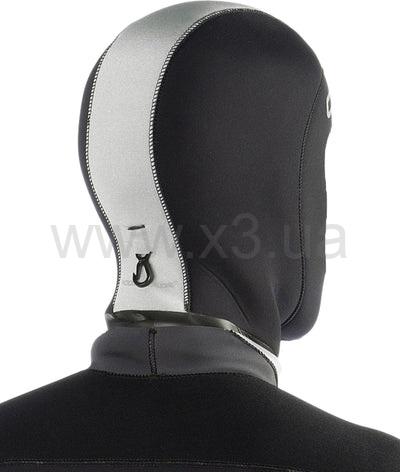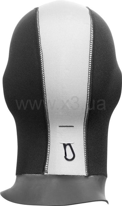 Гладкий неопреновый капюшон анатомической формы толщиной 5 мм оснащен водонепроницаемыми уплотнениями вокруг лица и шеи. Рекомендуется для цельных гидрокостюмов с фронтальной молнией. Встроенная система отвода воздуха/воды в верхней части капюшона и скрытый карабин держателя капюшона сзади.