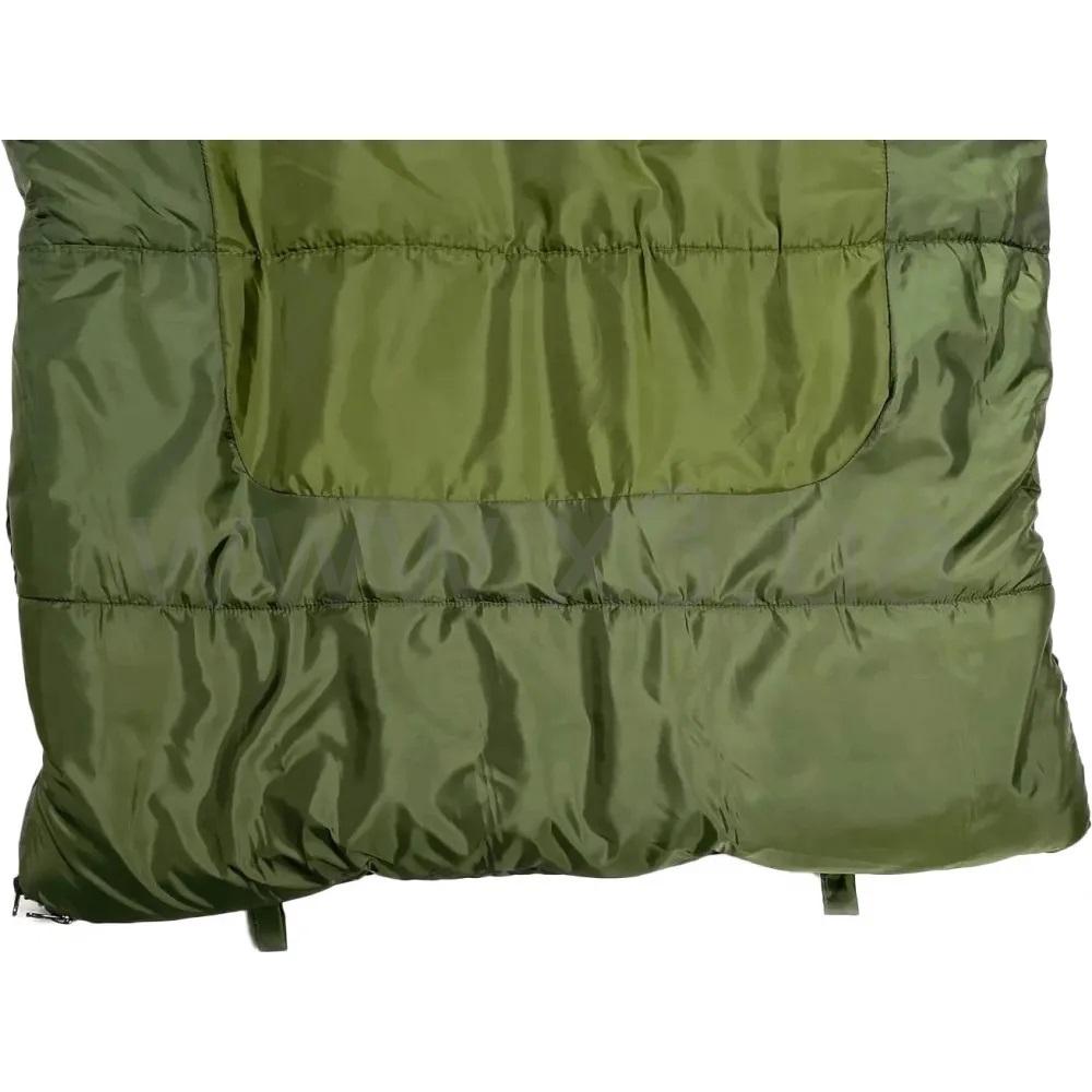 Прямоугольная форма и полная молния по 2 сторонам позволяет раскрывать спальник полностью и укрываться ним, как одеялом, под которым поместится 2 человека.