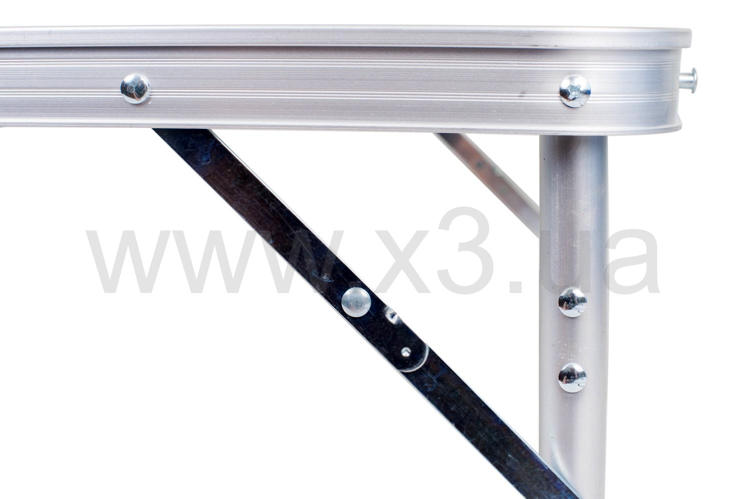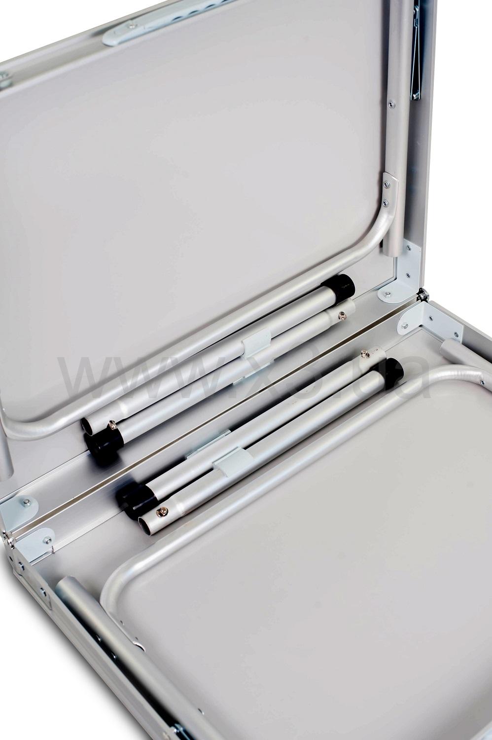 Легкий, удобный, стойкий стол еще и регулируется по высоте в двух положениях. Алюминиевый профиль очень широк – 50 мм. Комплектуется чехлом.