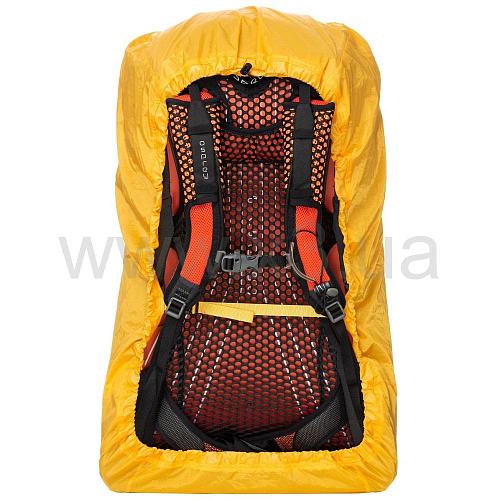 Turbat Raincover M - дождевик для горного рюкзака (35-50 литров). Легко и надежно фиксируется за спинкой рюкзака маленьким фастексом. Снизу есть люверсы для воды, при попадании влаги в рейнкавер - вода вытечет. Есть светоотражающий принт, важно во время передвижения в темное время суток. Рейнкавер упаковывается в собственный карман, в сложенном виде занимает минимум места.