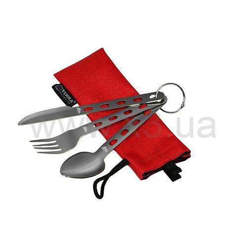 Набор столовых приборов (ложка-вилка-нож) туристический. Набор упакован в удобный, качественный чехол из прочного материала 600D Polyester Rip Stop.