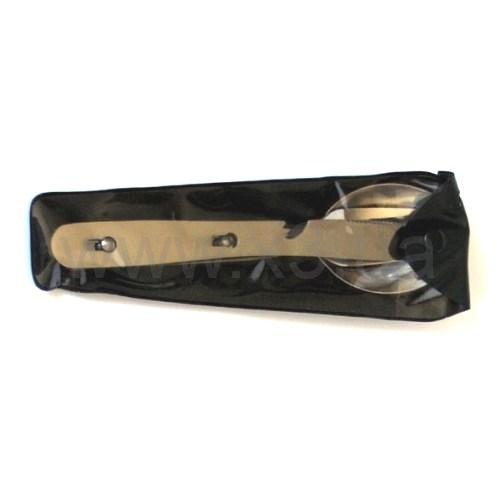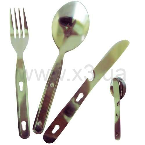 Туристический набор состоящий из вилки, ложки, ножа и открывалки. Приборы изготовлены из пищевой нержавеющей стали и удобно крепятся один к другому. Легкий, удобный в употреблении, красивый набор будет служить вам долго, обеспечивая комфорт в различных условиях.