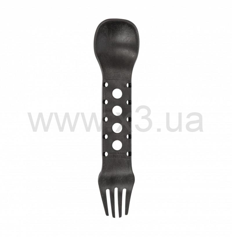 Новая ложка-вилка с цельной и облегченной перфорированной ручкой Trangia T-Spoon изготовлена исключительно из гибридного полимерного материала марки EcoPaXX, который состоит из синтетических волокон полиамида и натуральных волокон клещевины, при этом натуральных волокон в составе около 70% от общего числа. Полная длина изделия не превышает 15 см, а общий вес граничит с отметкой 14 грамм.