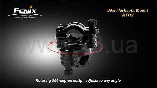 Велосипедное крепление для фонаря надежно фиксирует изделие, диаметром от 18 до 30 мм. и позволяет вращать фонарь на 360°. Крепление снабжено высококачественными нескользящими прокладками, защищающими фонарь от повреждений.