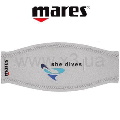 Мягкая неопреновая накладка с эмблемой She Dives. Обеспечивает комфорт и помогает удерживать ремешок маски на месте. Необходим для того, чтобы ваши волосы не страдали от резинового ремешка (силиконового), тем более, если у вас волосы длинные. С неопреновым чехлом маска не тонет.