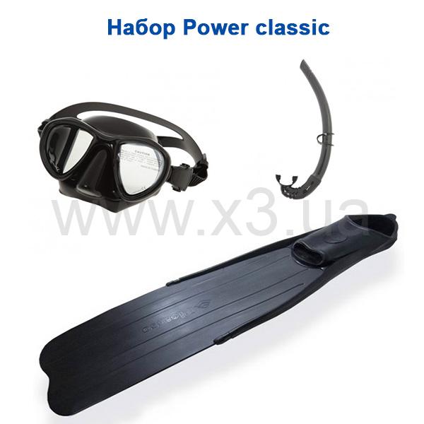 Ласты, маска трубка набора Power classic идеально сочетаются вместе.