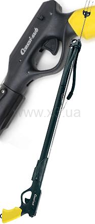 Прочное кольцо для крепления линя расположено снизу рукоятки, а ближе к оголовью имеется насадка на ствол с двумя приспособлениями для закрепления и сброса линя, крепежом в виде ласточкиного хвоста для катушки и направляющей для гарпуна.
