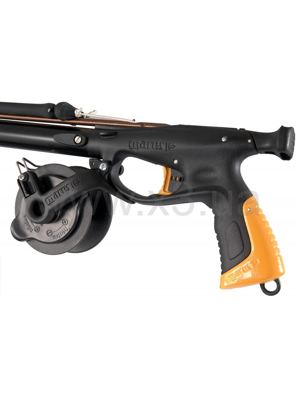 Ружье-арбалет для подводной охоты Mares Viper Pro DS 2K12 90 с катушкой - подводный арбалет. Алюминиевый анодированный жестский ствол диаметром 28 мм с направляющей для гарпуна. Ствол имеет и вторую направляющую, она зеркально повторяет основную и положительно сказываются на жёсткости арбалета. Стальной гарпун 6.5 мм с плавником. Зацеп дайнема толщиной 2 мм. Две кольцевые тяги 16 мм. Катушка Vertical Spiro в комплекте, катушка надежная, имеет продуманный дизайн и систему регулировки жесткости.