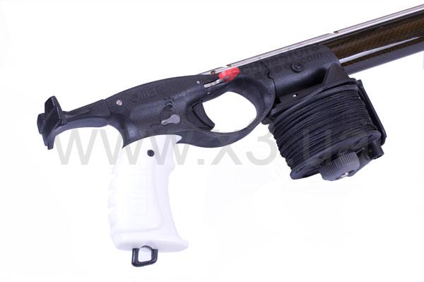 Несущая труба ружья изготовлена из карбона толщиной 1,5 мм с интегрированной направляющей. Рукоятка CAYMAN с цельным шепталом из нержавеющей стали и точкой упора, совпадающей с центром несущей трубы.