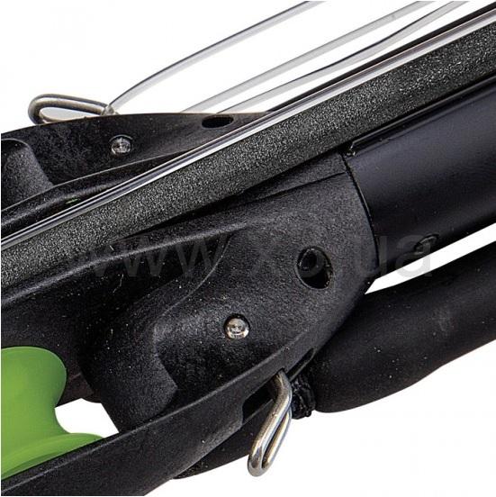 Фирма Сальвимар, оборудовала роликами топовую модель - "МЕТАЛ", ориентированную на опытных спортсменов - трофейщиков, знающих толк в оружии, что бесспорно является гарантией качества продукта ! "Линейка" выделяется: А) Удобной прорезиненой рукоятью со стальным спусковым крючком и сверхнадежным триггерным механизмом, способным выдерживать на открытой "голове" до 6 жгутов любого диаметра.