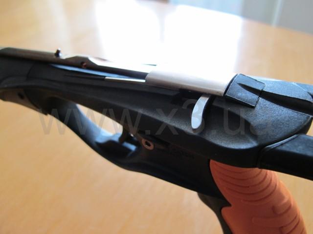 Арбалет для подводной охоты SALVIMAR Voodoo Rail Open. Арбалет с открытой головой с направляющей по всей длине баррели. Направляющая не приклеенная, а часть баррели. Ствол - профилированный и выполнен из специального аллюминиевого сплава с высокими механическими характеристиками. Угол наклона рукоятки и сама рукоятка (большая) удобные. Тыльная сторона рукоятки выполнена из резиноподобного пластика, т.е. антискользящая. Саму рукоять можно выставлять под любую толщину. Скоба спускового крючка большая, что позволяет охотится с этим арбалетом в толстых перчатках. Предохранитель очень удобный, т.е. позволяет одним движением пальца его взводить или убирать, не меняя положения кисти. "Пятка" (упор для зарядки) приспущена вниз и не закрывает линию прицеливания.