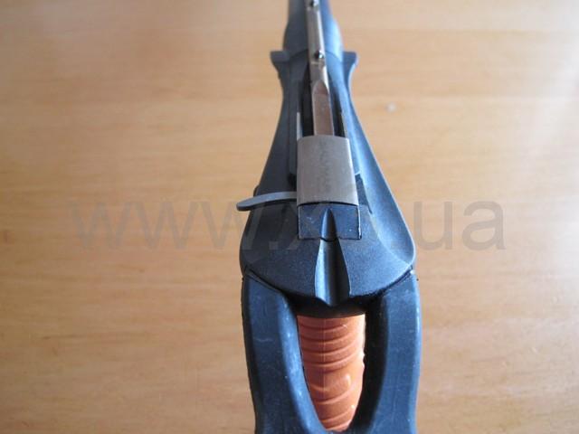 Арбалет для подводной охоты SALVIMAR Voodoo Rail Open. Арбалет с открытой головой с направляющей по всей длине баррели. Направляющая не приклеенная, а часть баррели. Ствол - профилированный и выполнен из специального аллюминиевого сплава с высокими механическими характеристиками. Угол наклона рукоятки и сама рукоятка (большая) удобные. Тыльная сторона рукоятки выполнена из резиноподобного пластика, т.е. антискользящая. Саму рукоять можно выставлять под любую толщину. Скоба спускового крючка большая, что позволяет охотится с этим арбалетом в толстых перчатках. Предохранитель очень удобный, т.е. позволяет одним движением пальца его взводить или убирать, не меняя положения кисти. "Пятка" (упор для зарядки) приспущена вниз и не закрывает линию прицеливания.