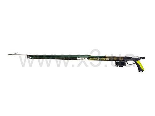 Мощный арбалет для морской охоты SEAC SUB Guun 30 имеет круглый баррель (ствол), диаметром 30 мм, изготовлен из легированного алюминия 6060. Оголовье открытое, для установки двух кольцевых тяг и с зацепом на гарпуне, для надёжной фиксации на гарпуне двух кольцевых тяг. Имеет большой боковой линесбрасыватель и удобный, большой предохранитель. Водонепроницаемость ствола от рукоятки, даже при экстремальных нагрузках, обеспечивается с помощью двух уплотнительных колец установленных на специальном независимо-поворотном внутреннем барабане. Триггерный механизм выполнен из нержавеющей стали путём лазерной резки, с антифрикционной полировкой на каждой детали. Две кольцевые тяги Pro Dye Red Dyneema, со специальным покрытием для обеспечения большей устойчивости к истиранию и ультрафиолетовому излучению (4-кратная растяжимость). Гарпун из нержавеющей стали марки 17-4-PH, диаметр - 7,0 мм, с 3-мя "шаркфинами" (Shark Fins).