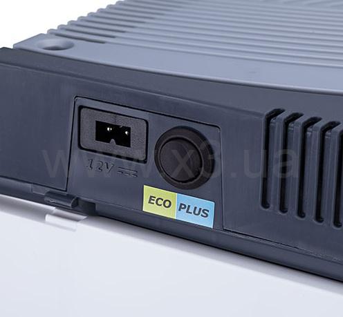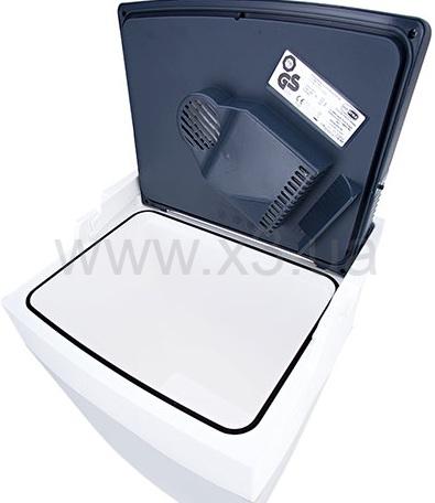 Холодильник питается либо от прикуривателя автомобиля, либо подключается к 230 В. Высокая герметичность обеспечивается резиновой прокладкой в крышке. Вертикально размещается две 2-литровые пластиковые бутылки или 38 шт * ж/б банка 0,33 л.