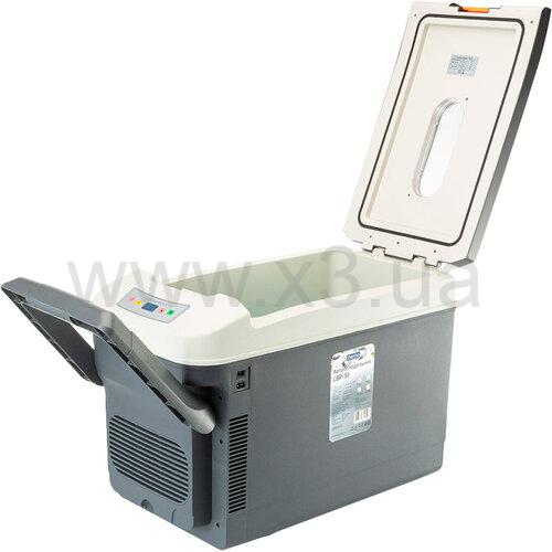 Автохолодильник Thermo CBP-35 - изотермический бокс объемом камеры 35 литров. Это устройство способно охлаждать продукты до температуры на 25 градусов ниже окружающей среды и нагревать на 65 градусов выше воздуха вокруг устройства. Среди плюсов термобокса стоит упомянуть систему защиты от влаги и поражения электрическим током.