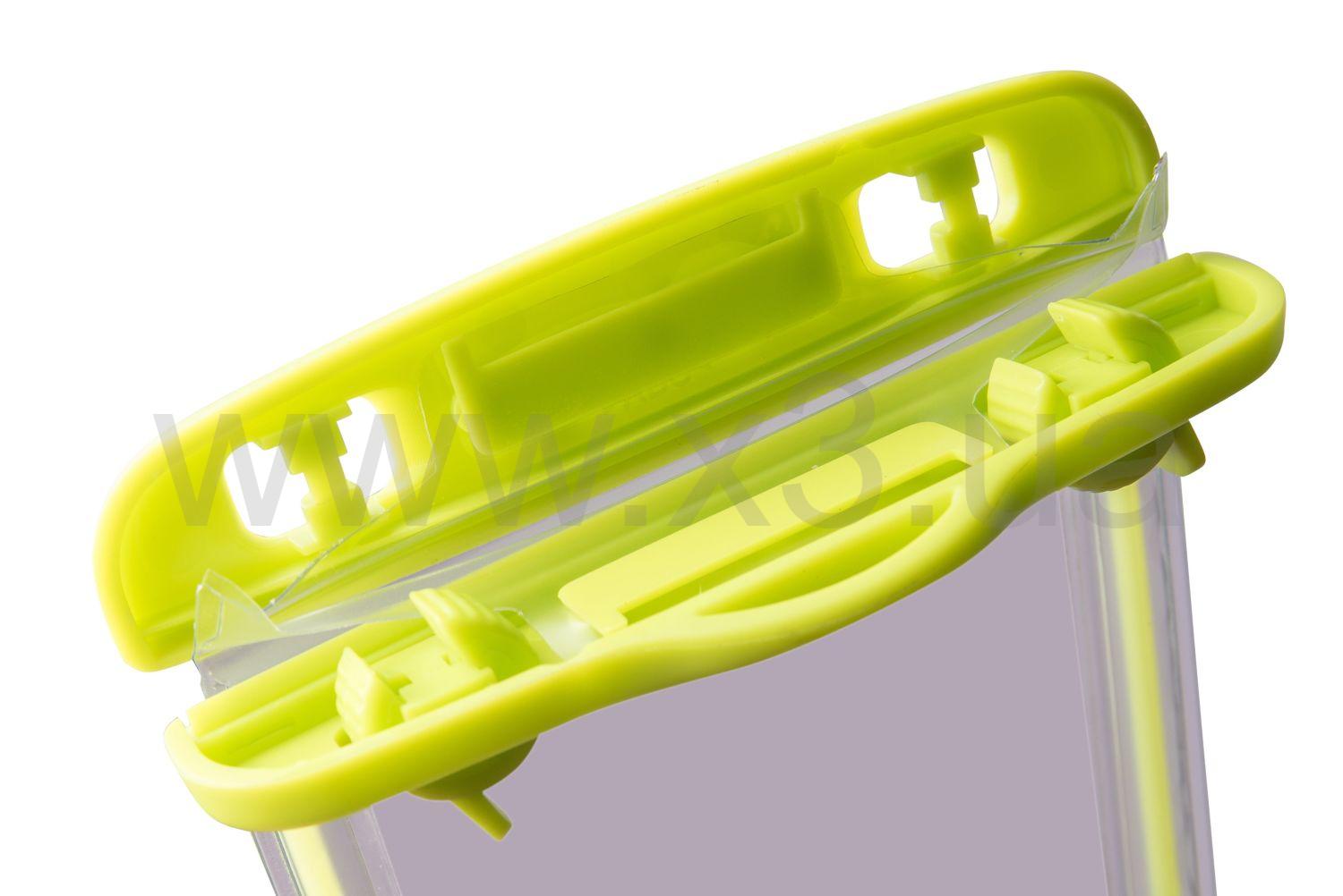 Прочный, эластичный и прозрачный гермо-пакет для мобильного телефона, смартфона , документов или денег размером 175*105 мм с пластиковым зажимом на входе и светоотражающей вставкой по периметру.