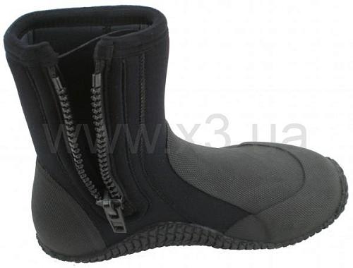 Боты из 7 мм неопрена. Двойная проклейка и прошивка швов. Подошва, носок и пятка сделаны из вулканизированной резины. Снабжены прочной молнией и нескользящей подошвой.