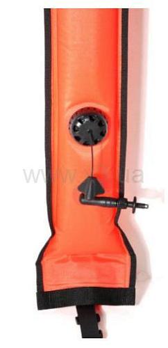 Буй BUOYS AI0939 - это буй с клапаном, наполняется воздухом тремя разными способами: снизу, как и любой другой, сверху или с помощью шланга. В любом варианте воздух не будет выходить, благодаря внутреннему двойному клапану. Предохранительный клапан не препятствует выбросу буя на поверхность во время всплытия. В основании буя вставлены две тонкие свинцовые пластины, которые обеспечивают вертикальное положение над водой. Сверху нанесена краска-отражатель, для безопасного погружения ночью.