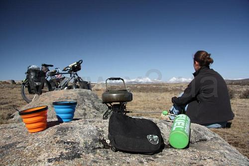 Чайник помещается внутрь набора Terra Lite HE. В комплекте сетчатый мешочек.