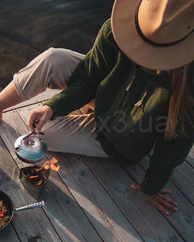 Туристический алюминиевый чайник от шведского бренда Trangia. Оснащен крышкой со стальным ушком и ручкой со съемной манжетой для защиты рук от ожогов. Подходит для плиток Trangia Stove в любой комплектации, туристических горелок, а также альтернативных источников тепла, таких как костер, печка на щепе или домашняя печь.