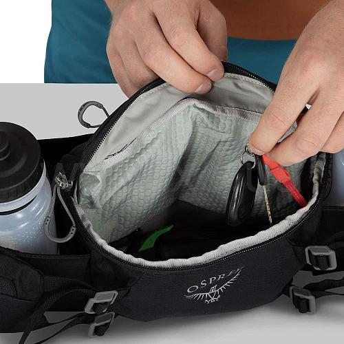 Поясная сумка от Osprey станет настоящей находкой - это новинка 2021 года на 5 литров. Она подходит для отдыха в городе или на природе – идеальный вариант для велосипедного спорта. Сумка оснащена двумя жесткими карманами, которые позволяют без остановки легко вытягивать и заменять бутылки с водой, пока вы жмете на педали. Угловой поясной ремень и компрессионные ремни держат сумку рядом с вашим телом и обеспечивают максимальную устойчивость при любом типе активности.